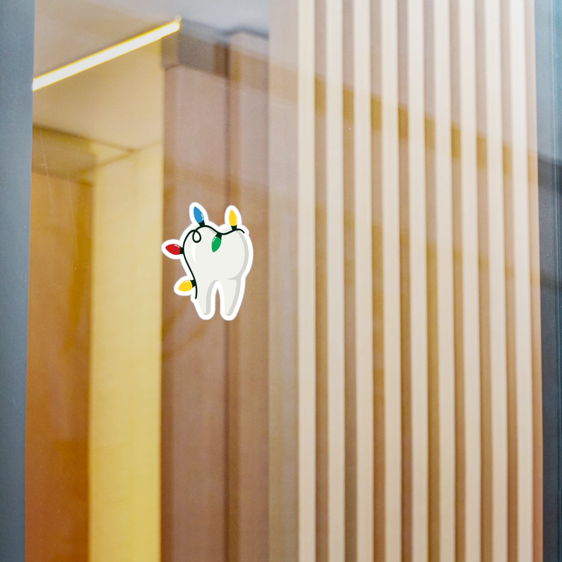 Tooth with Colorful Christmas Lights Vinyl Sticker — Dental Holiday Decal